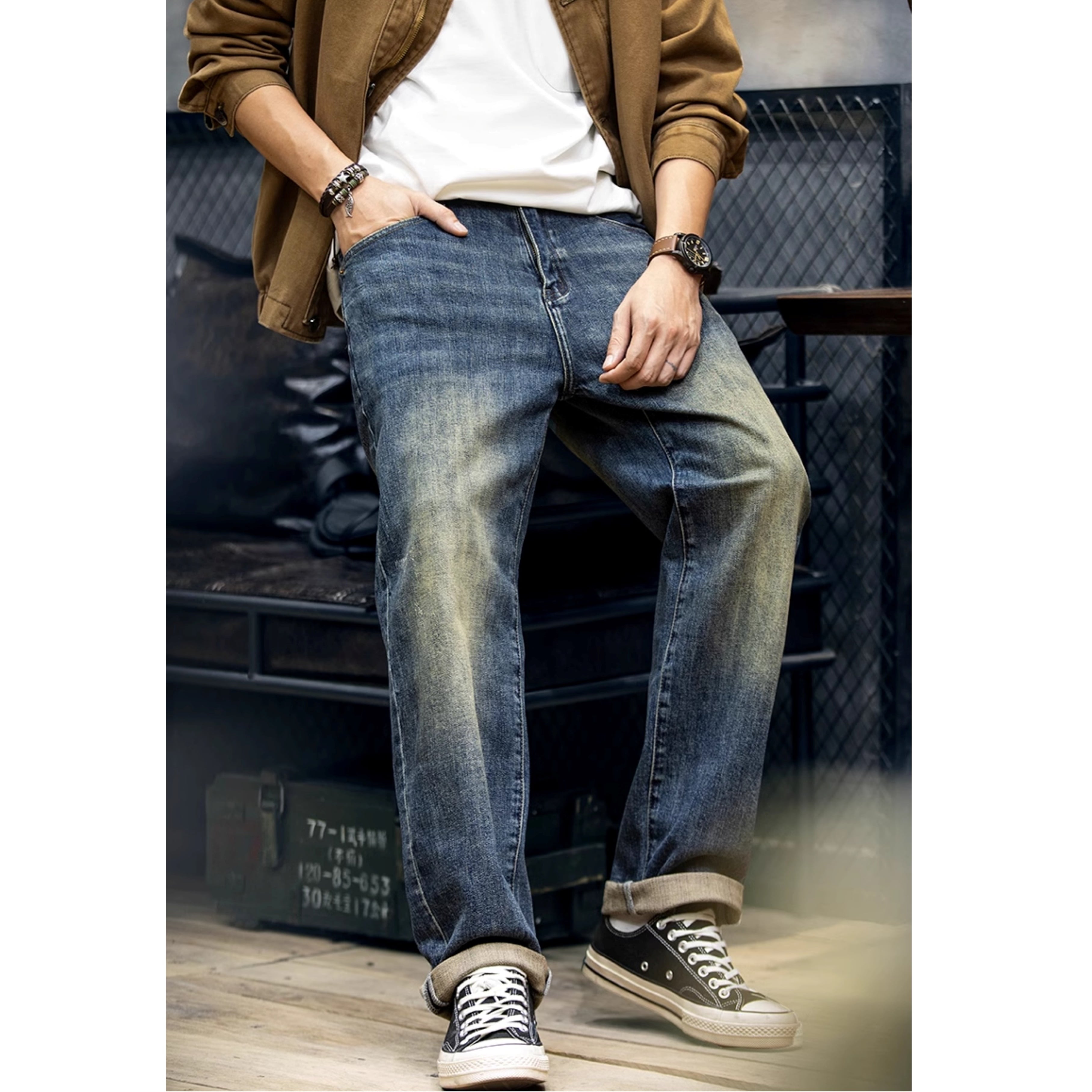 • レトロウォッシュドストレートジーンズ 11158